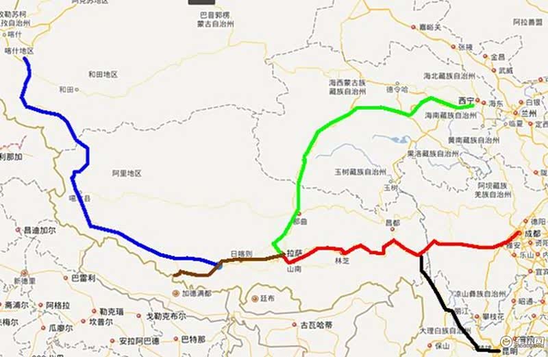 如果时间不富裕,驾车从成都来到拉萨,玩几天,就该沿着青藏公路往回走。进藏公路主要有:川藏南线(下图红线),青藏公路(下图绿线),滇藏公路(下图黑线)、新藏公路(下图蓝线),中尼公路(其实还是318,下图棕线),此外,还有川藏北线、214、丙察察。游客走的比较多的,是川藏进,青藏出。这条路线所需时间短,比较成熟。
