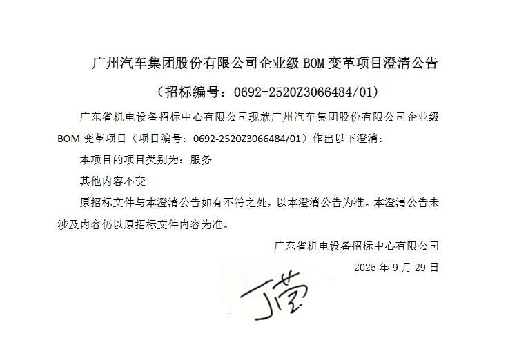 广汽上千万BOM项目招标仅两家企业参与 且报价这么接近?