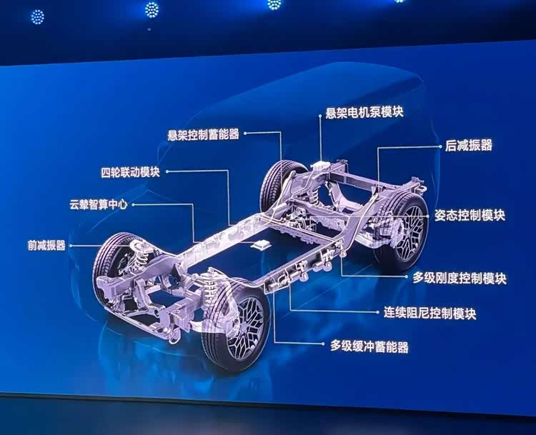 再提一级,是云辇-X,运动型液压悬架,全主动。