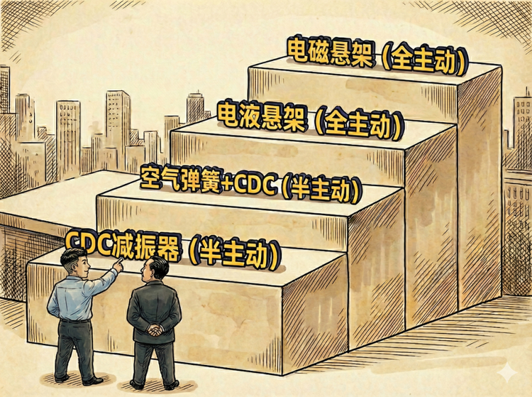 这两年,汽车悬架加速上新。十几万的车上惊现CDC,二十几万的车敢配空悬,甚至百万以上级的液压悬架也下放到30万以内车型,就连传说了几十年的电磁悬架也量产装车了。