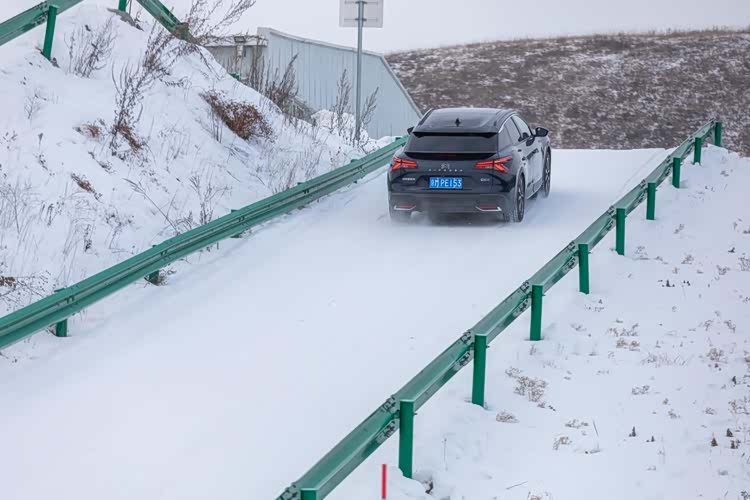 “雪地蛇形”测试,是在压实雪面按既定路线高速绕桩,考验的是车辆在连续重心转移下的循迹性和车身响应。508L最终交出的答卷是:平均车速56.23km/h,用时14.1秒完成全程。在低附着路面上还能保持这个节奏,而且车尾不过度摆动,说明底盘和电子系统在权衡“转得快”和“站得稳”之间,找到了比较好的平衡点。