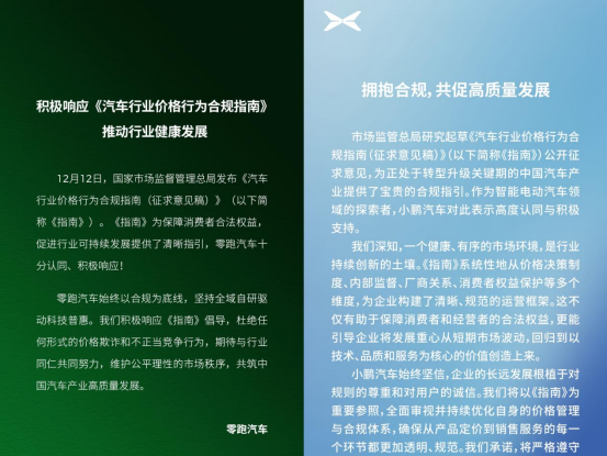 比如车企们不能通过各种手段亏本卖车了,而且销售车辆时要明码标价,明确告知交付时间,需要付费解锁的功能也得第一时间明确告知,总之车企和经销商们可不能再像以前一样耍各种宣传上的小花招了。目前已经有比亚迪、零跑、小鹏、长城、奇瑞、北汽等多家车企都发声明积极响应《指南》的倡导,这也就意味着明年行业会更加规范,咱们购车也会更省心。