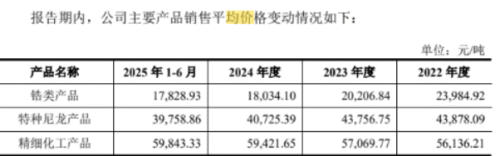 值得关注的是,公司主要产品销售平均价格呈现下滑趋势,尤其是锆类产品和特种尼龙产品均降幅不小。公司介绍,产品价格根据市场价格确定,价格波动主要系由于上游原材料价格波动传导以及产品市场供需关系相互作用导致。