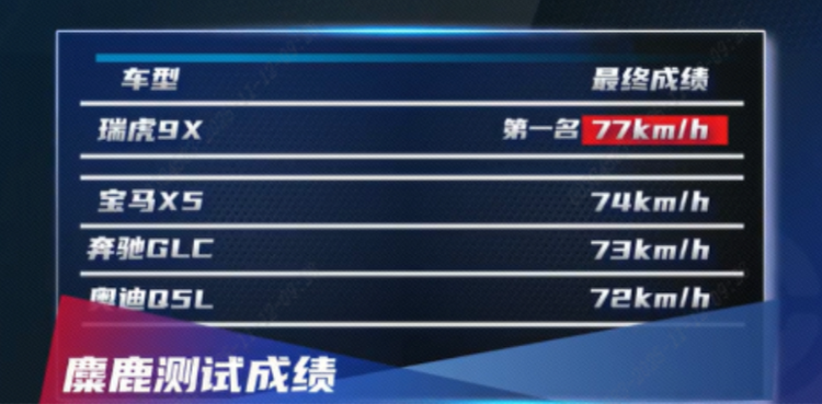 紧接着是专业性极强的麋鹿测试,该项目对底盘结构、悬架调校、电子稳定系统标定都有极高要求。瑞虎9X在激烈变线中保持车身姿态稳定,转向响应清晰,电子系统介入及时但不干扰驾驶体验,最终获得全场最好成绩。德系豪华SUV以操控稳健著称,但这次中国新燃油车型在同等赛道中展现出的底盘能力与标定水平,已经真正站上豪华技术的高度。