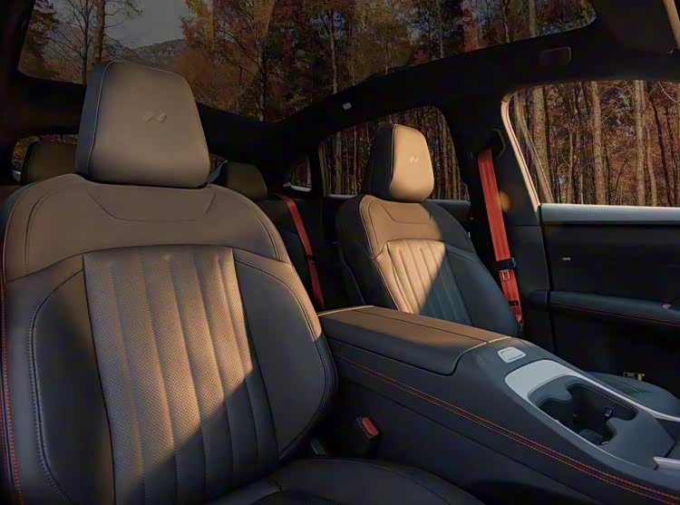 内饰以“专属配色+实用升级”强化竞争力,针对部分配置以及车内配色进行升级,从而提升车辆的专属感以及性价比。座舱采用雅黑高级皮革座椅,搭配紫白双拼缝线与橙色安全带点缀,与外观紫罗兰色形成视觉呼应,座椅材质触感细腻且耐磨。中控区域保留17.2英寸3K悬浮大屏与13英寸HUD抬头显示的组合,取消传统仪表的设计让视野更通透,内置高通骁龙8295P芯片的NT.Coconut系统,支持四区域语音唤醒与5G网络,操作流畅度同级领先。