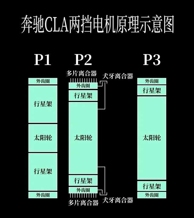 CLA 的电驱系统不是传统意义的“平行轴 + 主减 + 差速器”结构,而是一个高度集成的同轴模块。