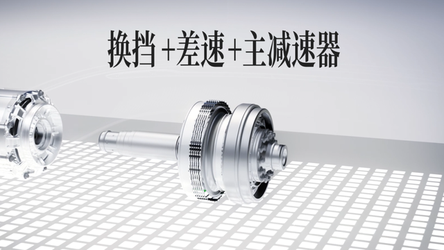 差速器与电机输出轴、行星减速排沿一条轴线布置。它使得整个电驱总成纵向更薄,为造型释放空间。