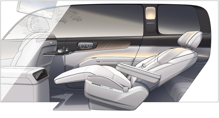 第二配座椅采用了零重力座椅,并且配备了小桌板、吸顶屏,预计还有车载冰箱等配置。并采用了Nappa全粒面真皮座椅,空气净化方面,该车配备了“森野氧舱”车载制氧机。