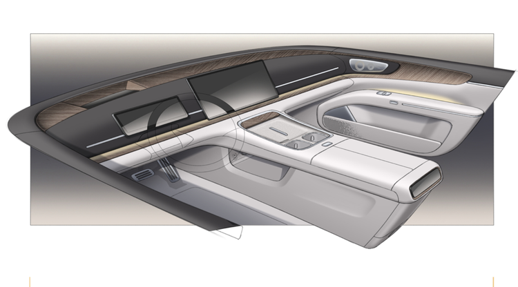 方向盘则采用了四幅式的设计,采用怀档的换挡方式,该车将配备两颗高通骁龙SA8797芯片,算力达到1280TOPS,可实现高阶的辅助驾驶功能。