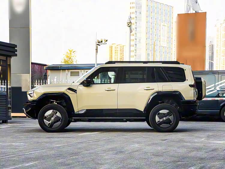 车身侧面线条硬朗,双段式腰线配合35英寸大脚胎,肌肉感十足。不过设计师也考虑到了城市通勤场景,提供了双保险杠方案——越野版直连副车架,适合翻山越岭;城市版则采用与车身同色的设计,线条更流畅,停在商场地库也不会显得突兀。车尾的“剑指苍穹”超红LED尾灯同样吸睛,搭配外挂式备胎(可选装全尺寸),硬派越野的仪式感直接拉满。