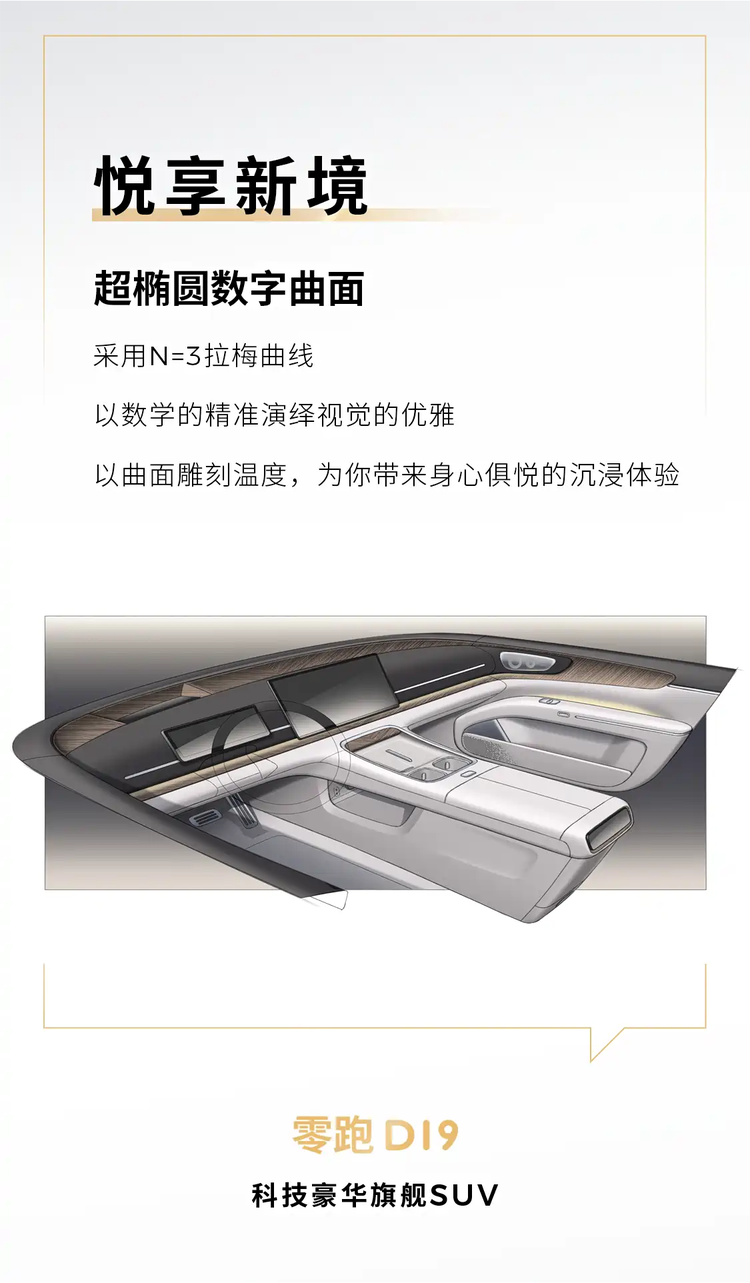 零跑D19的内饰设计图首次曝,来看图片。