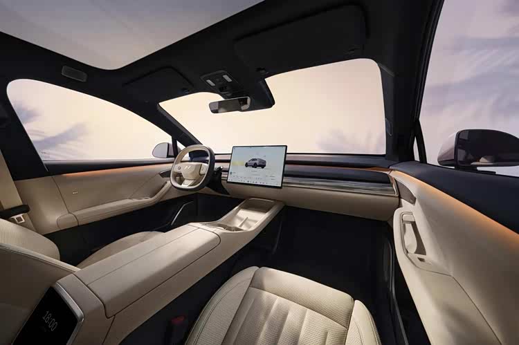 后排空间方面,同样身高 183cm 的乘客乘坐时,头部有一拳空间,腿部空间超过两拳,可较为轻松地放置腿部。后排采用纯平地板设计,中间无凸起,乘坐三人时,中间乘客的脚能自然放平。工艺上采用的是错位拼接设计。官方资料显示,全舱使用15平方米母婴级健康材质,并获得OEKO-TEX STANDARD 100一级认证。