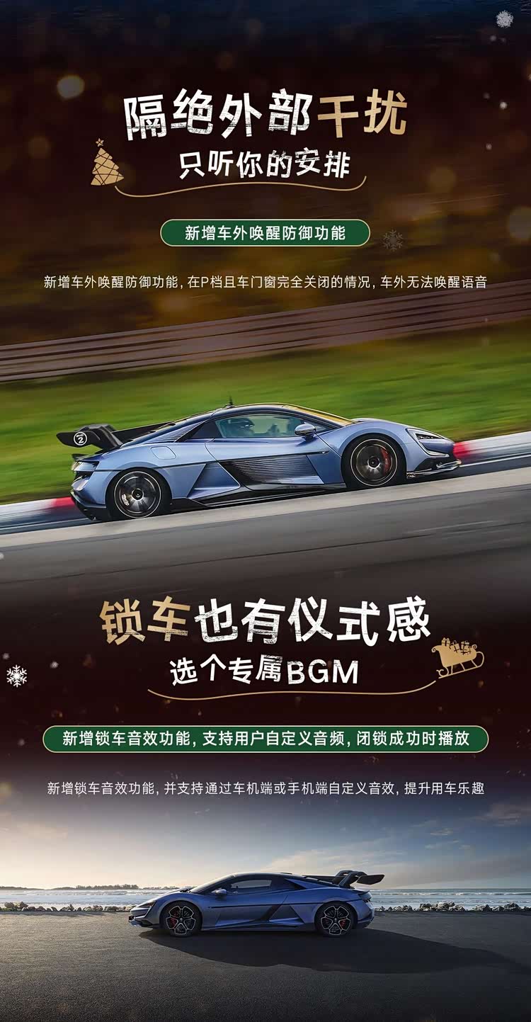 对于追求极致个性与体验的仰望U9车主,本次OTA注入了更多专属的乐趣与安心。它赋予了锁车动作独特的仪式感,用户可以通过车机或手机,为爱车设定一段专属的锁车提示音,在专属BGM加持下,让锁车也有满满的乐趣。