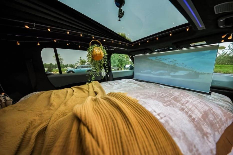 事实上,方盒子本身头部空间并不差,但放倒座椅变床后,原本的空间优势就被抵消了,成年人想上下床得蜷着身子,不小心还会撞到脑袋。而福特智趣烈马的电动举升顶,相当于给车内加了个“Loft夹层”,成年人站在床边上下床毫不费劲,坐直换衣服、整理露营装备、甚至和朋友在车里小坐聊天都绰绰有余,彻底告别了“只能躺着”的尴尬。