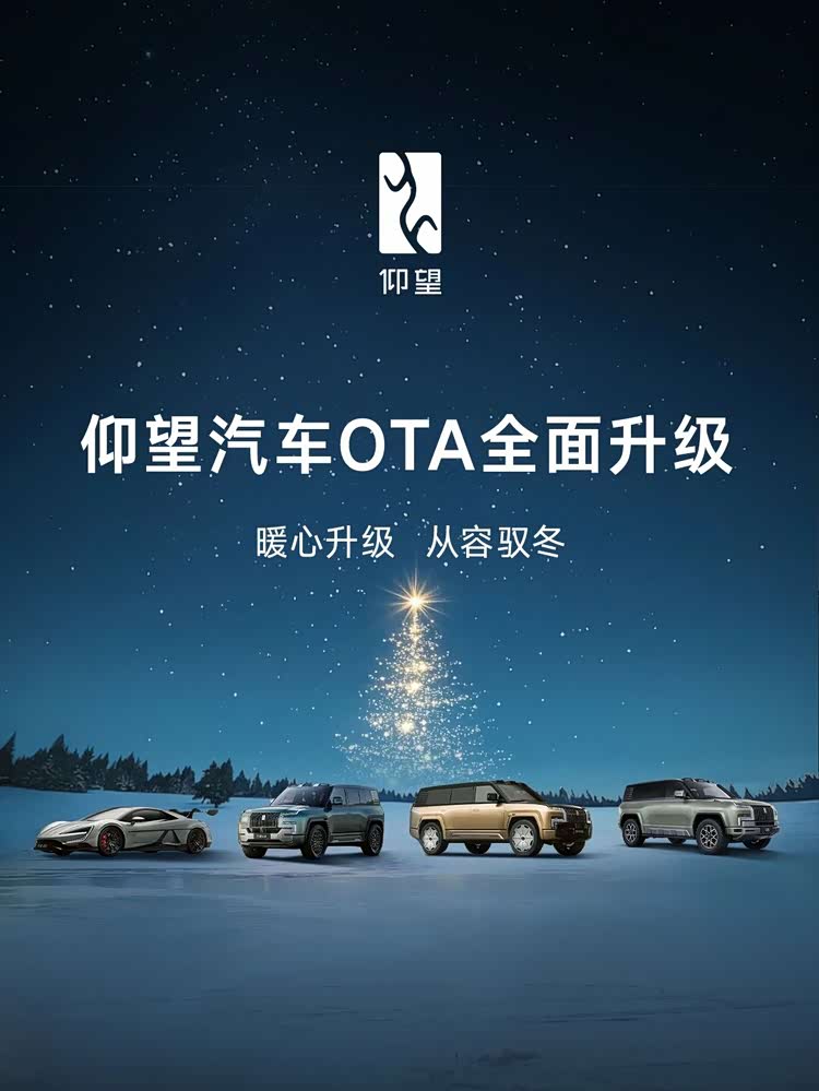 近日,仰望汽车为旗下车型仰望U8L鼎世版、仰望U9、仰望U8重磅推送了新一轮OTA升级。此次升级围绕用户真实用车场景,从豪华舒享、个性乐趣到全域智能,通过一系列“暖心”且实用的细节功能新增与优化,让尖端科技更具温度,助力用户在多元出行场景中,尤其是在冬季用车时,拥有更从容、更安心、更愉悦的体验。
