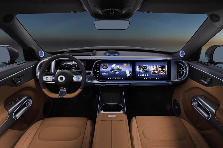 同样的,该车也应用smart Pilot Assist驾驶辅助系统,顶配车型配备有前端激光雷达和英伟达双Orin-X芯片,支持全场景领航辅助和记忆泊车,这套系统大概率也是吉利千里浩瀚智驾体系的一部分。