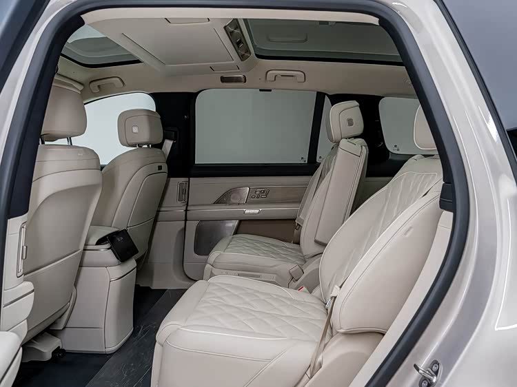 座椅配置堪称“头等舱级别”,前排与第二排标配Nappa真皮零重力座椅,支持151°躺平、加热/通风/按摩功能;第三排坐垫长度达48cm,130°大躺角让成年人短途乘坐也不憋屈。内饰提供帕米尔棕、黛山蓝等四种配色,甄选云影真木饰条与软质包裹,触感细腻如“第二起居室”。