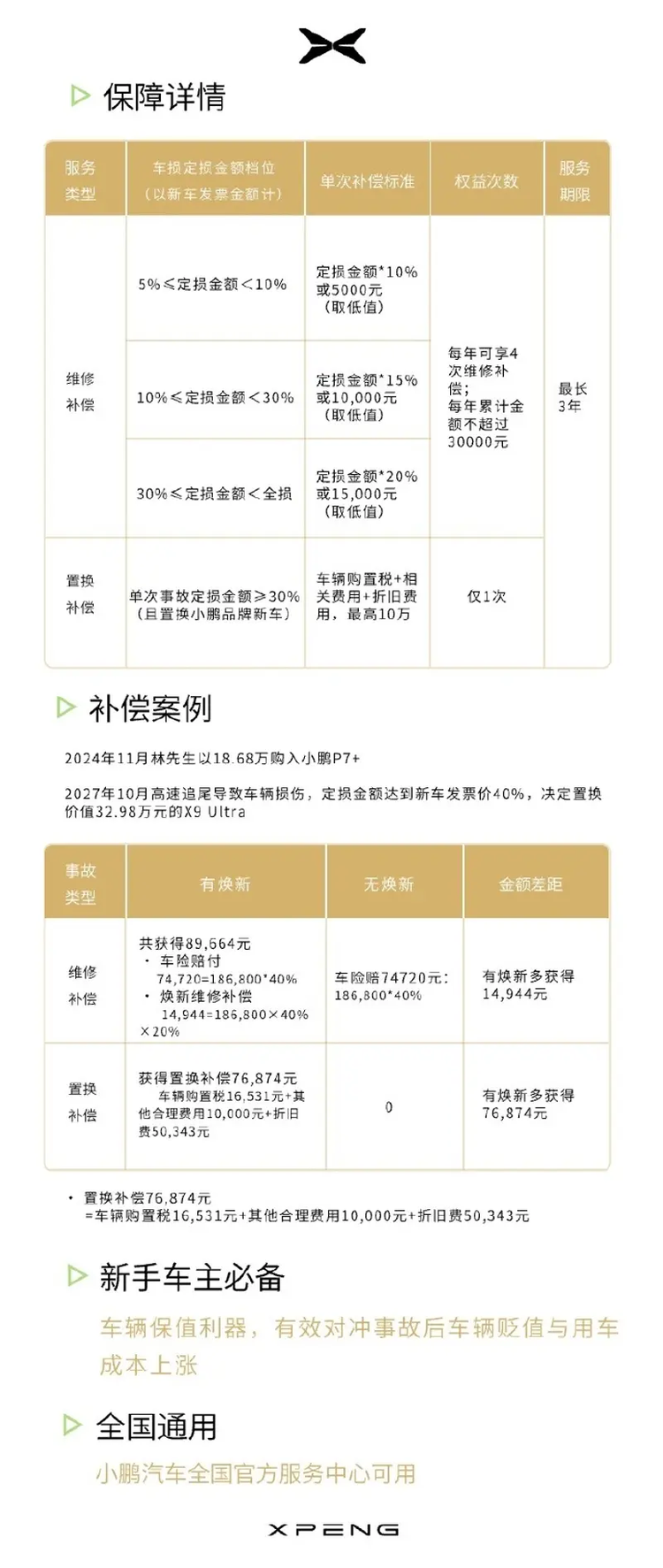 总的来说,小鹏汽车的事故焕新服务是一项针对车辆事故后成本的补偿方案,它通过维修和置换补偿的组合,为车主提供额外保障。保障期3年、全国通用的特点,增加了其实用性。但车主在购买时,应基于自身驾驶习惯和风险承受能力来权衡。这项服务的长期效果,将取决于实际执行中的便捷性和车主的反馈。