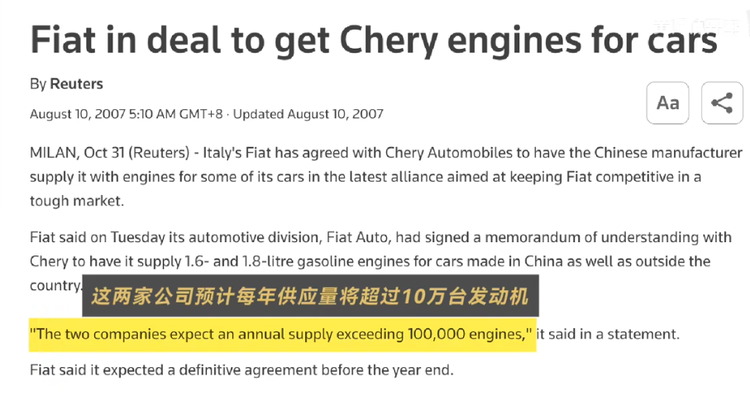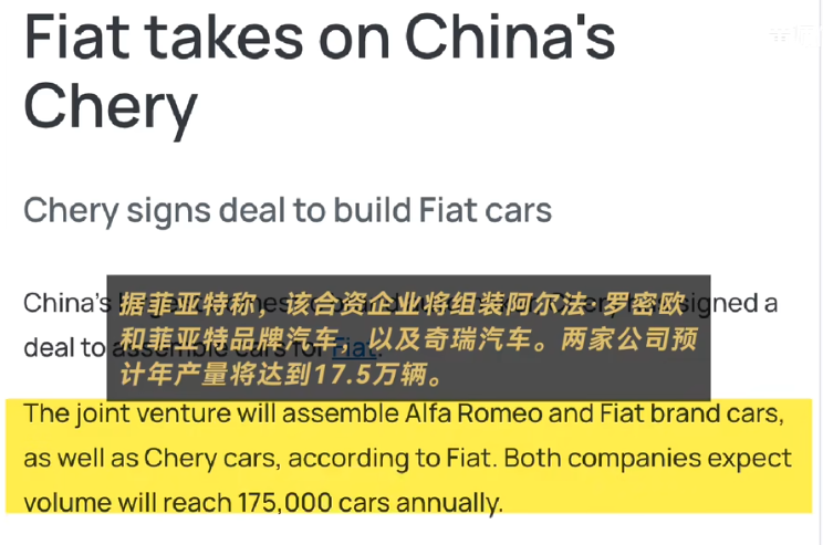 另一边,对菲亚特来说,与南汽决裂是决裂,但还是得在中国发展,所以南京菲亚特破产前,菲亚特就已经在寻摸新的合作伙伴,找来找去,就到了那时候满世界找合资伙伴的奇瑞,2007年6月,双方甚至都已经签订了合资《谅解备忘录》,计划2009年开始生产菲亚特、阿尔法罗密欧等车型,年产17.5万辆,同时奇瑞反向为菲亚特提供每年10万台以上发动机,但一方面是因为08年金融危机,菲亚特没钱了,另一方面是菲亚特要什么都管,只把奇瑞当成代工厂,搞点菲亚特智行汽车,总之最后合资没成功。
