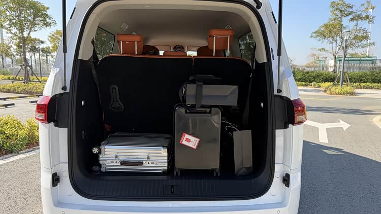 更实用的是空间灵活性。三排座椅可以前翻、4/6分折,组合出7种模式,后备箱在满员情况下还能塞进18个20寸登机箱。如果是露营或搬家模式,座椅一放倒,简直是个小货车。对于家庭用户或者经常需要带器材的创业者来说,这个装载能力很友好。