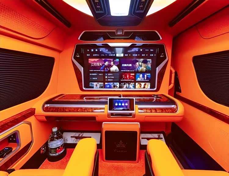 隔断下方集成的茶台办公桌设计更是贴心实用。茶台区域配备小型蓄水装置与茶具收纳格,商务洽谈时,可轻松煮茶待客,在茶香缭绕中拉近与客户的距离,营造轻松愉悦的沟通氛围;办公桌区域宽敞平整,采用耐磨防水材质,可放置笔记本电脑、文件资料,搭配车内充足的电源接口,满足移动办公需求,让商务人士在旅途中也能高效处理工作,彻底摆脱 “在路上无法办公” 的困扰。