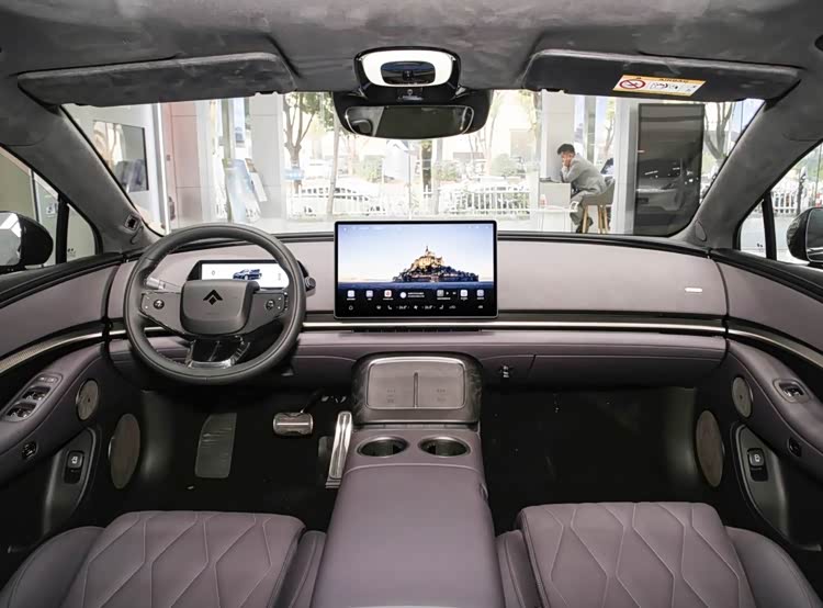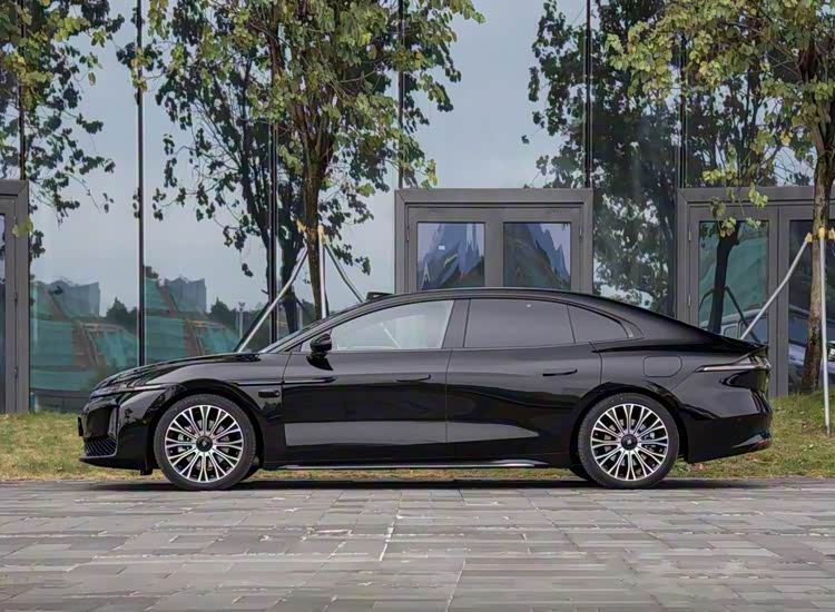 车身尺寸优势较为显著,其长宽高分别为5130/1966/1500mm,轴距3020mm,比奔驰E级更宽敞,为后排空间奠定基础。车身侧面采用溜背造型,无框车门与隐藏式门把手降低风阻,风阻系数低至0.275Cd,20英寸“大饼”风格轮毂搭配紫色涂装,尽显优雅运动风范。车尾部位,贯穿式LED尾灯与上翘“小鸭尾”呼应,层次感更为出众。