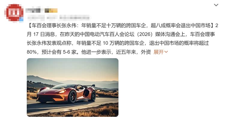 近期,在第十二届中国电动汽车百人会论坛媒体沟通会上,车百汇理事长张永伟表示,近五年外资品牌和自主品牌市场份额出现“剪刀差”调整,跨国车企面临重大挑战,退出市场的风险增大。