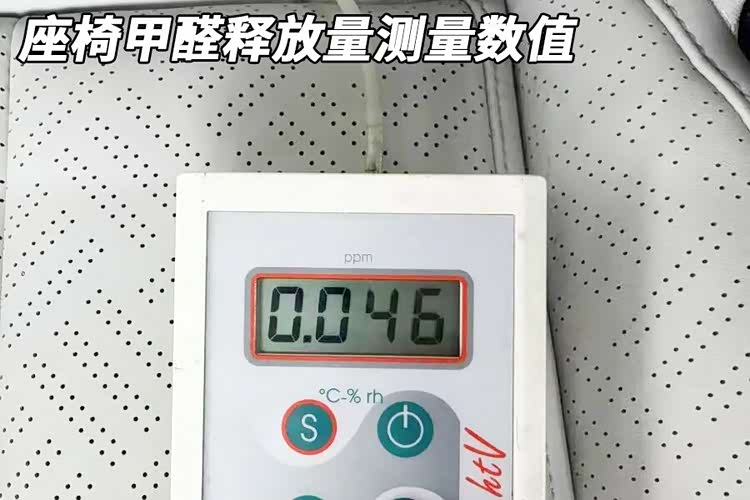 座椅的甲醛释放量测量数值为0.046毫克每立方米,顶棚中的甲醛释放量测量数值为0.065毫克每立方米。