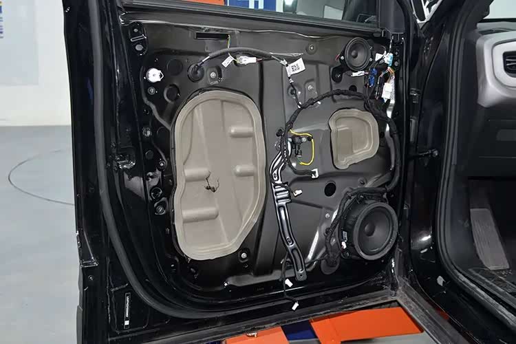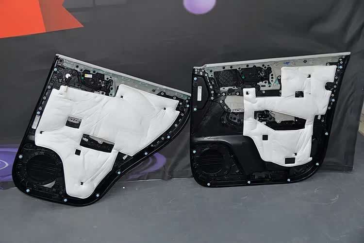 车门内饰板上贴有大面积的白色原生隔音棉。