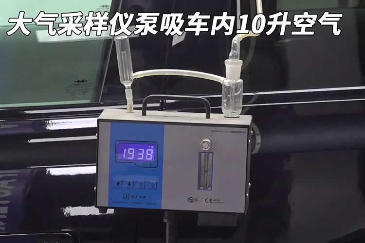 测试方法:将测试车辆在自然环境中,打开车门车窗进行完全通风;随后,将一根硅胶软管固定在司机头枕附近,模拟人呼吸位置;关闭车门车窗,将车辆停在恒温23±1℃的环境中密封静置16小时;使用采样仪从软管泵吸出10升车内空气,与酚试剂反应;将显色剂滴入酚试剂中,静置15分钟;使用醛正甲醛检测仪将显色后的样本进行检测,得出结果。