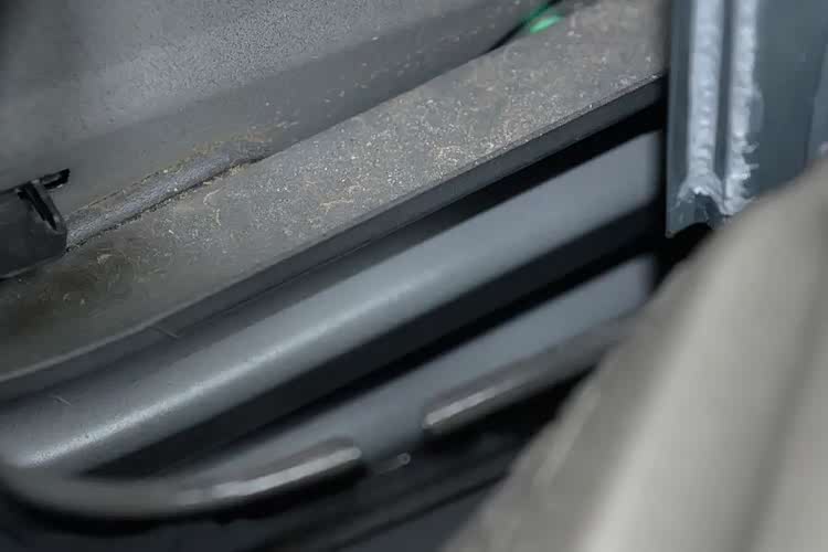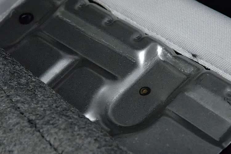掀开后排座椅靠背上的毡布,内部有非常完整的保护钢板。