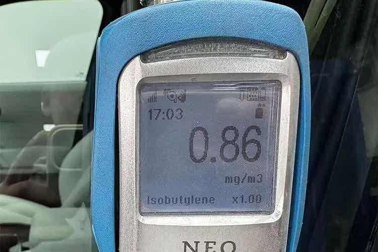 经过在23±1℃恒温环境中16小时的封闭,这辆车的车内空气TVOC释放量测量数值为0.86毫克每立方米。
