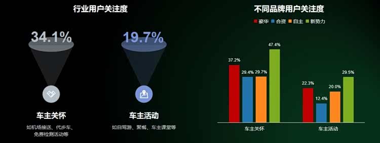 用户需求的变化方面,报告通过分析不同用户群体的关注点,为品牌精准施策提供了依据。从整体来看,行业对“服务质量”和“服务交付”的关注度最高,其次是“服务沟通”和“服务人员”,“服务设施”关注度相对较低。继续细分,新势力用户更关注“质量与交付”,自主品牌用户则侧重“沟通与人员”。这种差异化需求要求品牌服务有更细的颗粒度,以回应不同用户群体的核心期待。