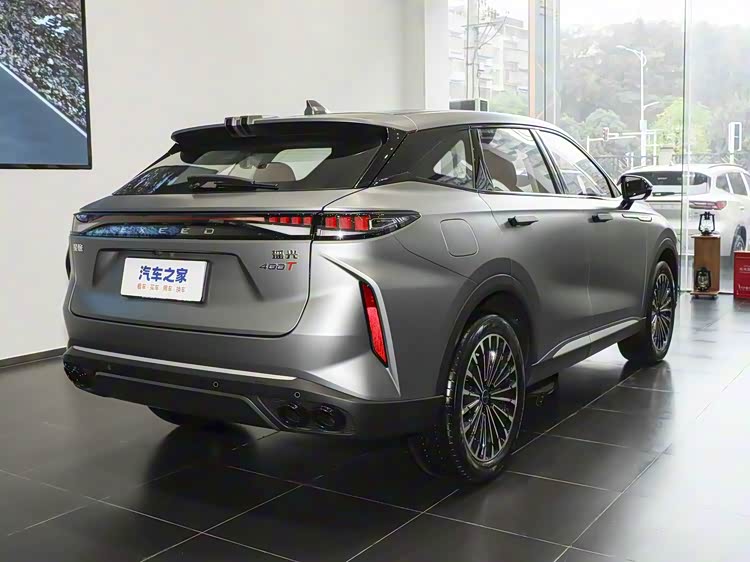 再来看车尾部分,车尾设计延续了瑶光家族的简洁风格,贯穿式尾灯组经过熏黑处理,细长造型拉伸了视觉宽度,中央的星途英文标识提升了品牌辨识度。车顶扰流板与高位刹车灯增强了运动氛围,后包围采用黑色饰板装饰,搭配双边共四出排气布局(实际为装饰件),进一步突出了力量感。牌照区域微微内凹,与梯形轮廓相呼应,层次分明。这种设计语言在保持整体简约的同时,通过细节处理强化了年轻化定位,符合当下消费者对SUV外观的审美偏好。