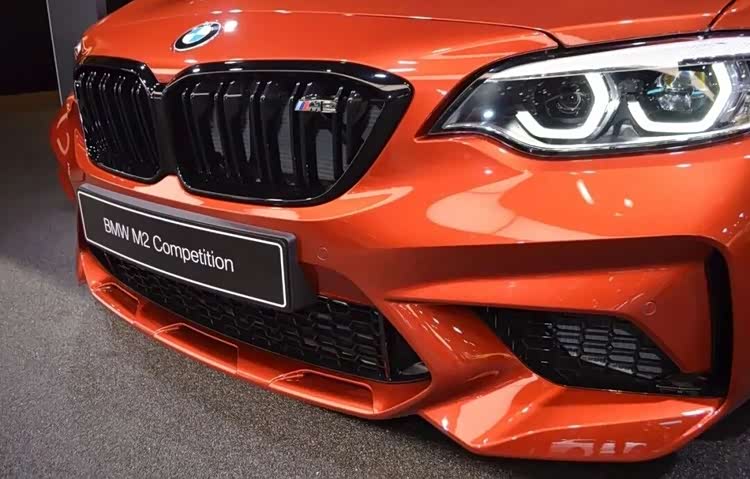 我特意找了一组实拍图,这是在2019年日内瓦车展上宝马展出的一台落日橙M2 Competition,相比之下这个车漆是比较艳丽的。F87刚开始发布的普通版是N55的发动机,甚至也没有恶魔耳后视镜,这让一些M粉丝感到不满,而Competition最大的升级就是换装了S55发动机,和大哥M3/M4一样,这就没话说了吧?不过在一些人眼里S55的声浪不如N55那般浑厚。