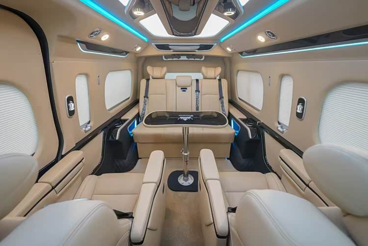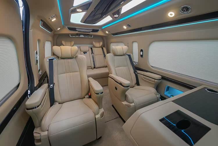 同样采用龙鳞纹设计,靠背角度可调,间距达85cm,确保满员舒适性。地板:航空级PVC白地板,仿玉石纹路,16道打磨工艺,光滑耐磨;搭配新西兰羊毛混纺红地毯,脚感柔软,降噪显著。顶棚:可选“星空顶”或“A380空客风格”顶棚,搭配电动百褶窗帘,提升氛围感与私密性。