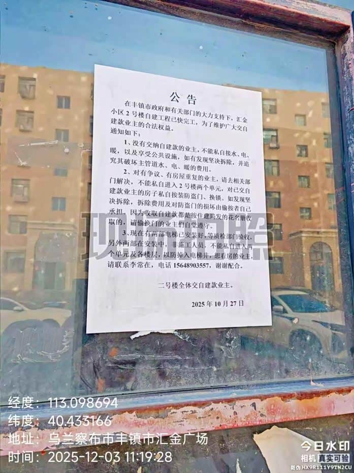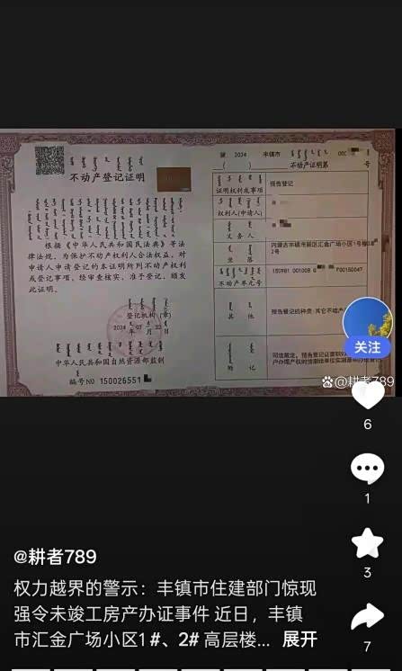 近日,内蒙古乌兰察布市丰镇市住建局因汇金广场小区1#、2#高层楼房承建方王某的实名举报后被媒体曝光“小区水电气都没通,咋先发了房产证?”业主一头雾水..,而意外“火”了起来。