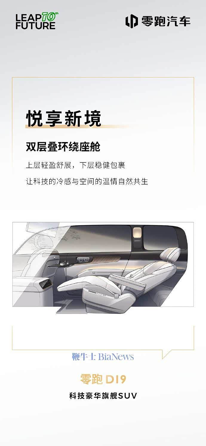 12月19日,笔者从官方获悉,年底车圈的瓜一个比一个实在,零跑 D19 内饰设计概念首度公开,就把大六座SUV的舒适内卷拉到了新高度。作为零跑旗舰D平台的首款车型,这次不玩虚的,直接把“双层叠环绕座舱”和“零重力座椅”这两个王牌亮出来,看完只想说:这波设计,终于踩中了家庭用户的核心需求。据悉, 零跑D19(参数|询价)内饰将会在12月22日迎来正式首发亮相!