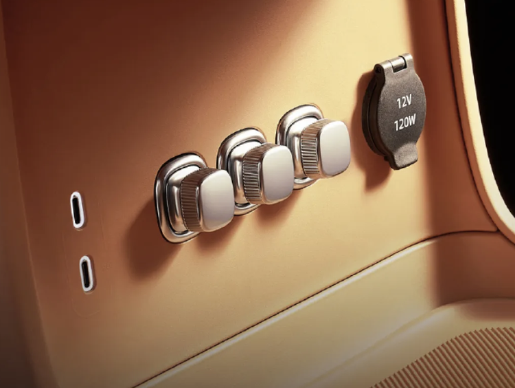 皮质、木纹饰板再加上金属喇叭罩的搭配,明显是想摆脱之前的“科技直男”风,往豪华温馨感靠。不过最让我惊喜的是细节,4个柔光漫射的静奢壁灯+360°旋转的航空阅读灯,5300K的色温刚好,阅读不刺眼还不打扰旁人,这种照顾到每一位乘客的细节,比堆大屏更显用心。