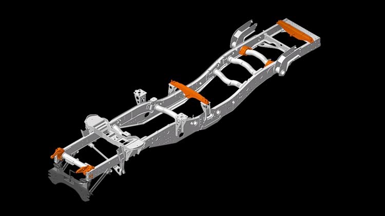 谈到乌尼莫克,绕不开扭转柔性车架。但这也是容易被误解的概念。很多人以为,乌尼莫克的越野能力来自一副很软的车架,事实恰恰相反,乌尼莫克采用的是一副完全焊接的曲轴式梯形车架,配合焊接管状横梁,这种结构抗扭刚性高。