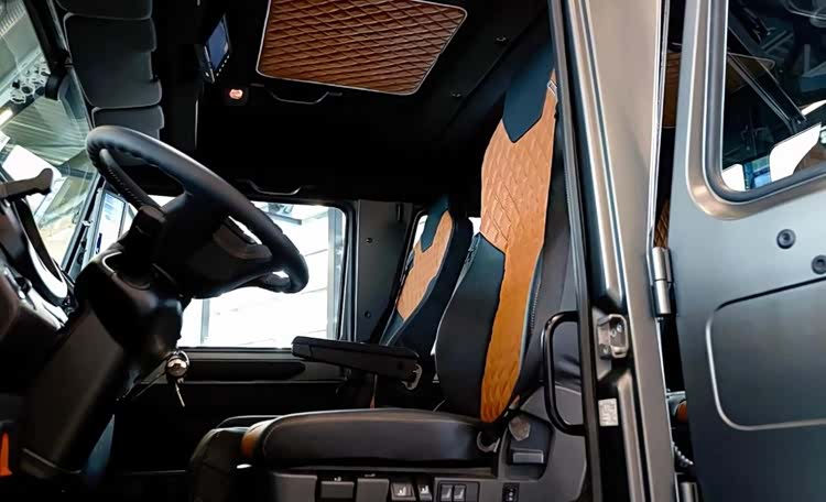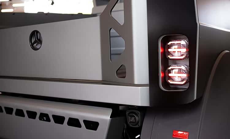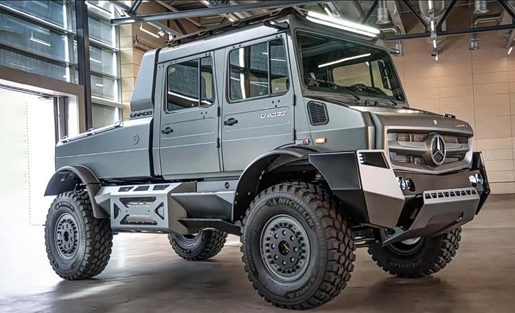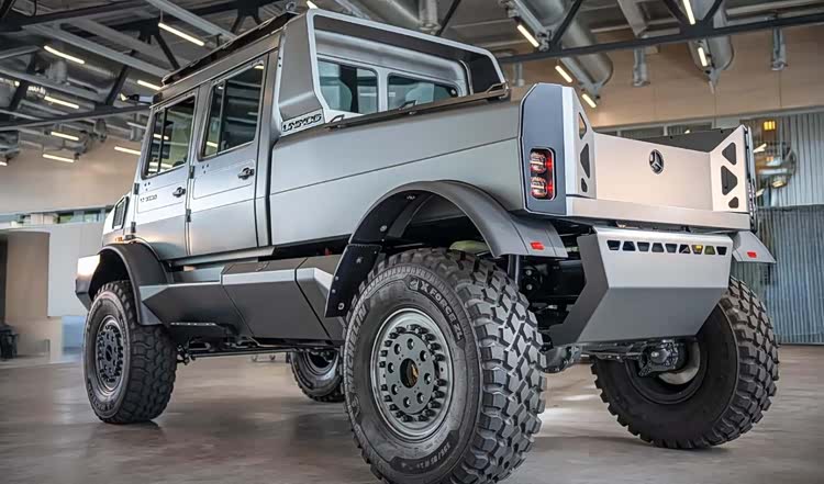 80周年版则反其道而行。在保留原本机械架构的前提下,基于U 4023打造,首次融入豪华配置,比如定制的真皮座椅与内饰包覆,LED氛围灯,更多的隔振、隔音处理,以及双排座布局,动力系统也由原先的四缸发动机升级为OM 936六缸柴油发动机,功率提升至300马力,适合全家人外出旅游。