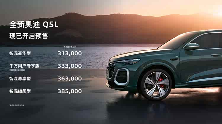 车家号·0浏览·2025-12-20 18:24 · 北京12月20日,一汽-大众全新一代 奥迪Q5L(参数|询价)开启预售,预售价格区间为31.3万元至42.8万元。据透露,全新奥迪Q5L将于下个月正式上市,届时将公布最终售价和完整配置信息。