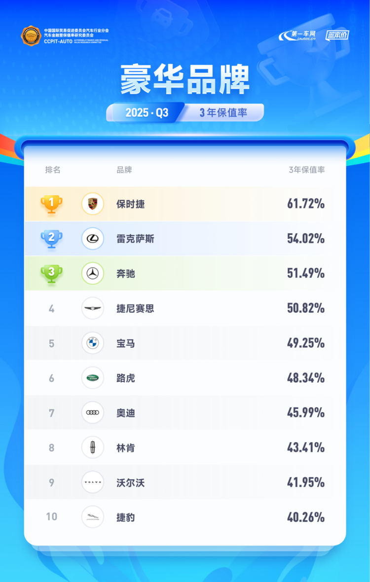 据中国国际贸易促进委员会汽车行业分会和蓝本价联合发布的《2025·Q3中国汽车保值率排行榜》显示,奔驰以51.49%的3年保值率稳居豪华品牌前三。久居不下的保值率,反映出用户、市场对奔驰始终保障用户权益、价值和体验的高度认可。