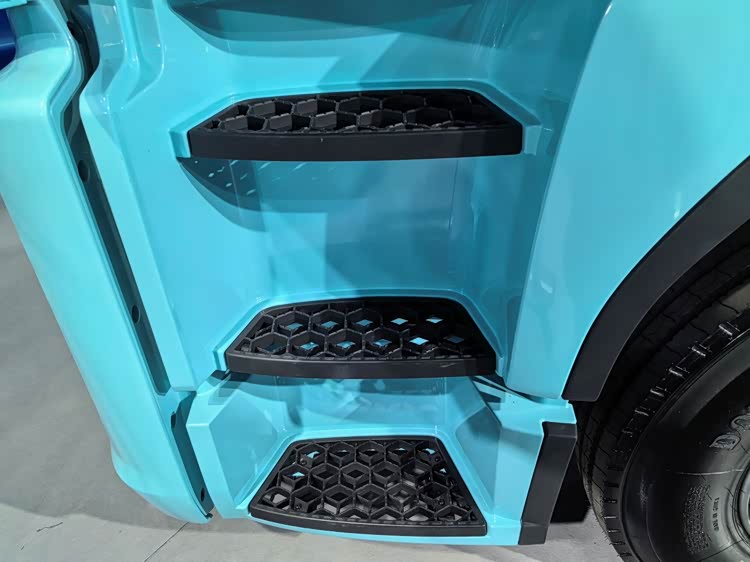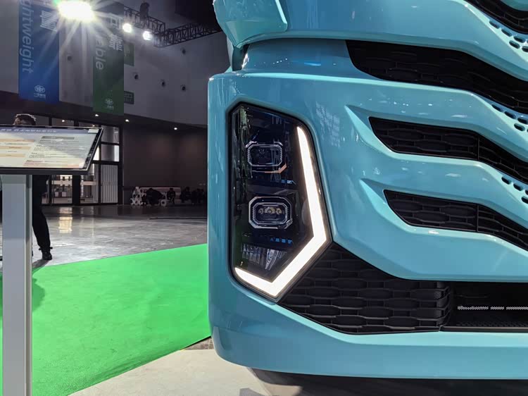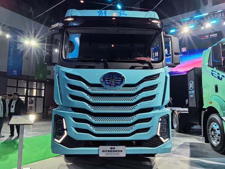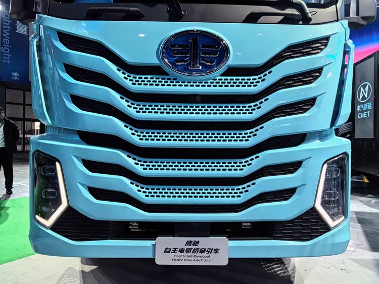 图片上这辆马尔代夫蓝色的新车就是解放鹰驰自主电驱桥牵引车,它也是解放鹰驰系列中纯电动牵引车的代表性产品。它继承了鹰驰系列造型美观大气、轻量化、风阻低等优点,又在动力、节能、可靠性等领域做出了提升。