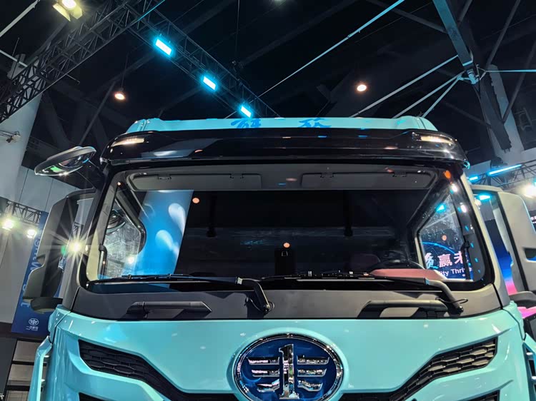 前风挡周围采用黑色突出层次感,车顶苍劲有力的解放二字从远处看上去格外醒目。
