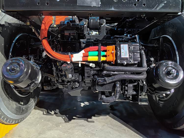 解放自研CAR11E260S2型电驱桥采用一体式铸造桥壳,承载力好。电机、变速箱整合为一体,结构更简单,传动效率更高。电驱桥车型动力链重1.6吨,较电驱箱车型轻0.2吨;综合效率91%,较电驱箱车型高3%。对比一下数据不难发现,采用电驱桥的纯电动车更为节能高效。