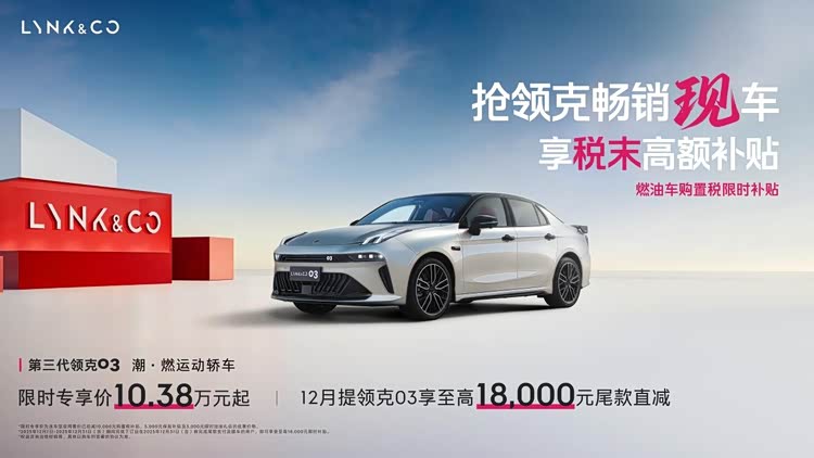 而这些技术,并没有停留在赛车上,而是早已融入领克03家族的量产体系之中。对于消费者来说,买车不只是买参数,更是买一套经得起时间和强度考验的工程逻辑。回到消费层面,其实现在正好是一个相对友好的入手窗口。12月期间,领克03家族推出专属购车政策,限时专享价10.38万元起,12月提车可享至高18,000元尾款直减,这让赛道同源技术不再只是“听说过”,而是真正有机会开回家。懂行的人看明白了,这个亚军,确实不简单。
