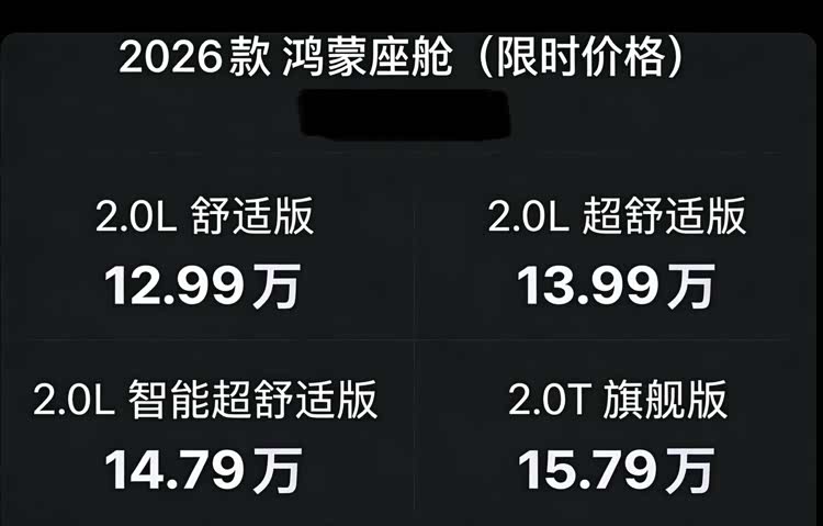 因此我认为这个2.0T旗舰版,是应该优先考虑的。如果给四五十岁的老登买,那2.0L超舒适版就足够了,剩余两个版本,性价比真不怎么高,谨慎选择呀。