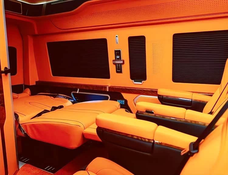 此外,车型的三色顶灯与方形窗框设计,为车内氛围与外观细节增添亮点。三色顶灯安装在车顶中央,支持白色、暖黄色、淡蓝色三种灯光模式切换:白色灯光明亮清晰,适合商务办公、阅读等场景;