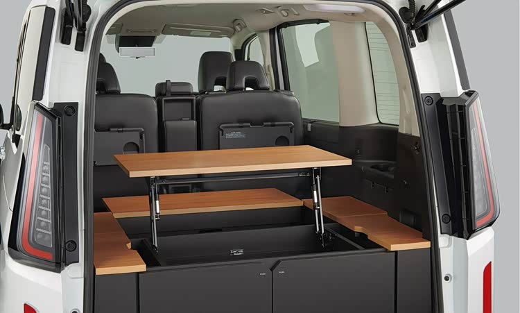 座椅方面提供有7座以及8座版本可选,而且还可以选装前排或者后排残疾人专用的座椅,同时还能选装多功能的后备厢行李架,甚至能够化身小桌板。